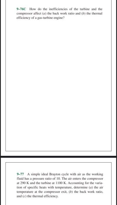 Solved 9 76c How Do The Inefficiencies Of The Turbine And Chegg Com